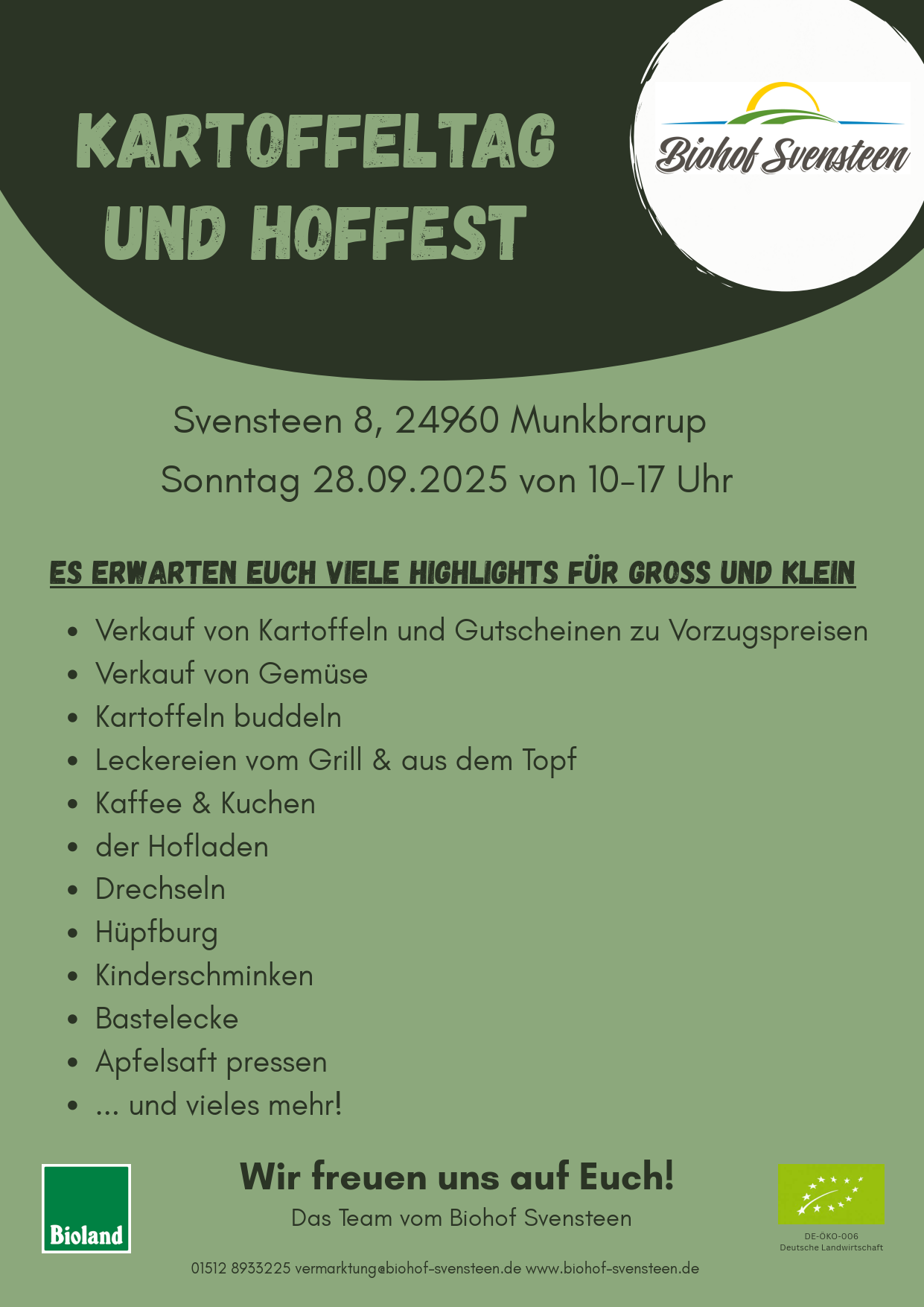 Zum Biohof Svensteen gehören Menschen und Tiere, die hier leben und arbeiten. Angegliedert an den Biohof Svensteen findet Ihr bei uns einen Hofladen, einen Hofkindergarten, Ferienhäuser in unmittelbarer Nachbarschaft und unseren Milchviehbetrieb Hof Wipholm.